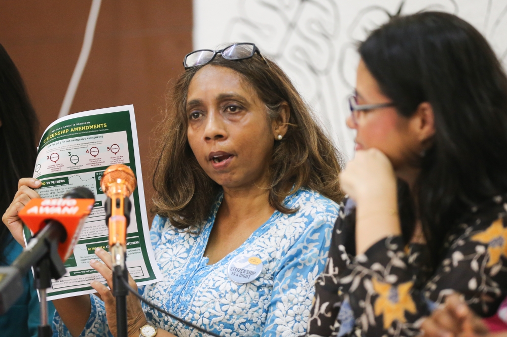 Lawyer Sharmila Sekaran, who chairs Voice of the Children, said the citizenship amendments that should be tabled as a Bill in Parliament should only be the progressive one that enables Malaysian mothers’ overseas-born children to automatically be citizens, but said MPs should oppose regressive citizenship amendments if any are tabled and ask for each proposed amendment to be individually voted on.