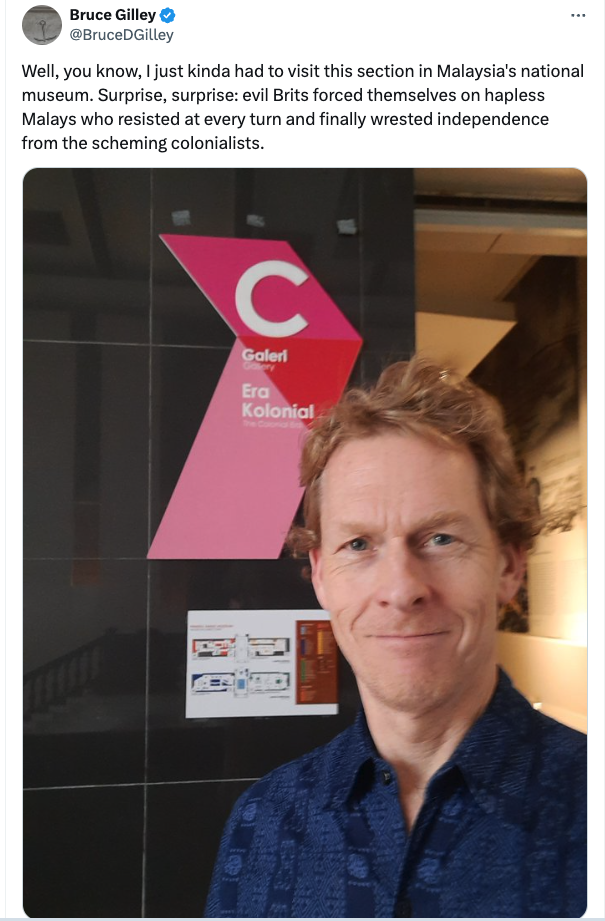 On his X account earlier this week, Gilley had also mocked an exhibit of the British colonial and the Malayan resistance in the National Museum here.
