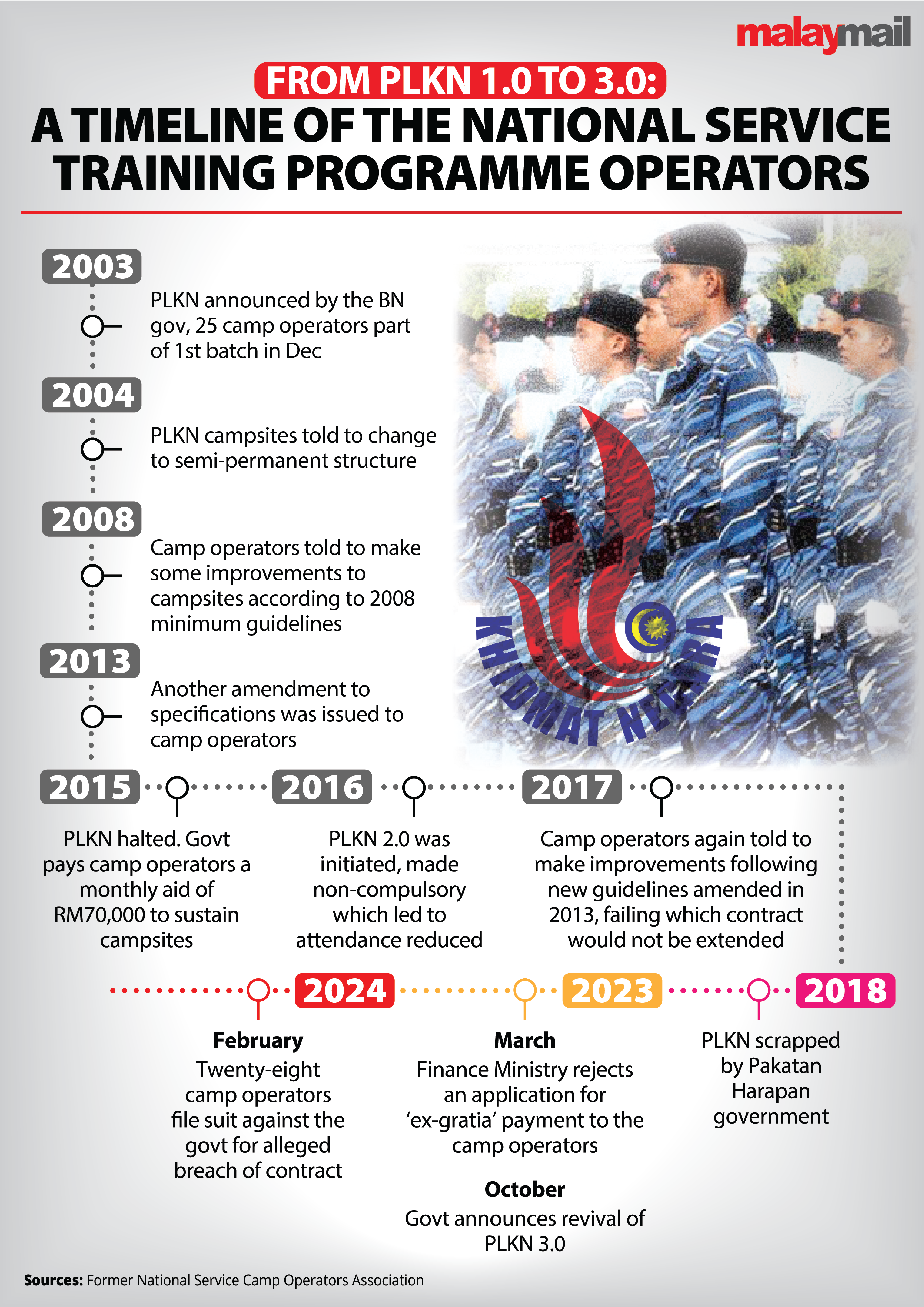 Known in Malay as the Program Latihan Khidmat Negara, the programme was initiated by the Barisan Nasional (BN) government in 2003 — between the end of Tun Dr Mahathir Mohamad's first term as prime minister, and the start of his successor Tun Abdullah Ahmad Badawi.