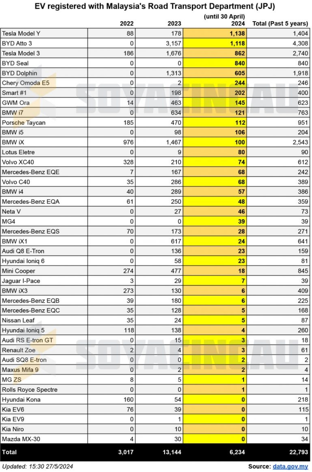 Do note that the registration data covers all vehicles registered with JPJ in Malaysia including grey imported EVs.