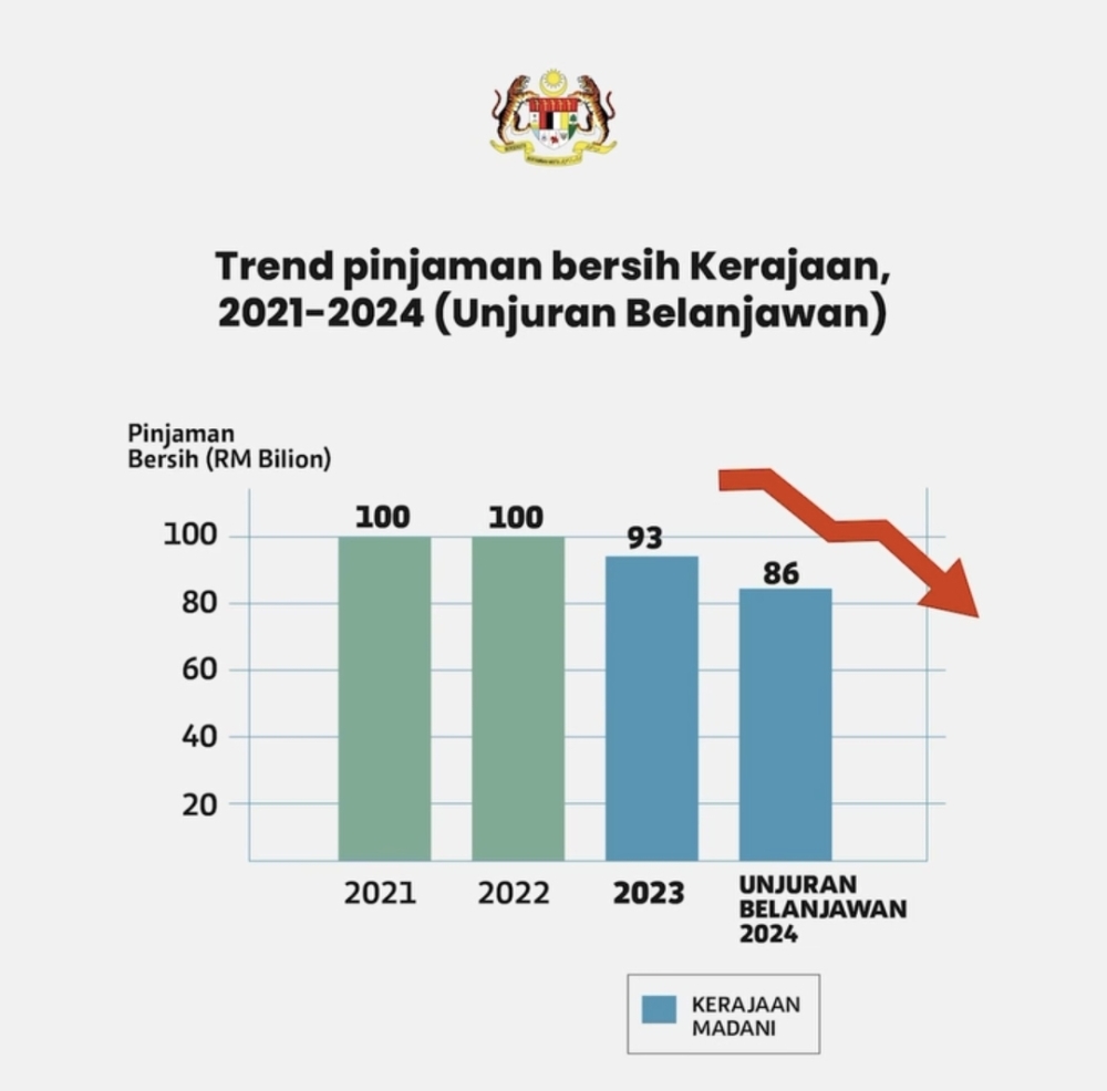 He said in 2021 and in 2022 the nation's debt reached RM 100 billion respectively, but it was reduced to RM93 billion in 2023, and it has further declined to RM86 billion this year.
