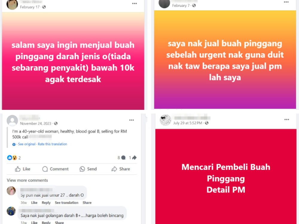 In the Facebook post on November 24, 2023, a woman with the user name “Aisy Lelika” detailed her age, health status and blood type and stated that she wanted to sell her kidney for RM500,000. She listed her phone number for those interested.