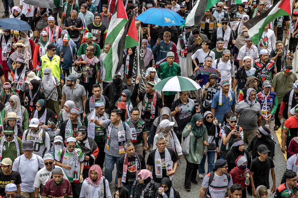 Named “Himpunan 1 Tahun Taufan Al Aqsa”, it served to commemorate the “Al Aqsa Storm” (also called Flood or Deluge) — the October 7, 2023 armed incursion by Hamas and Palestinian nationalists into Israel, which has since sparked a one-year brutal retaliation by Israeli forces into Gaza and Lebanon.