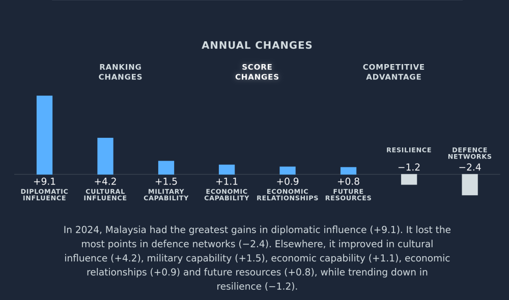 “Malaysia exerts more influence in the region than expected given its available resources, as indicated by the country’s positive power gap score, which increased in 2024.”