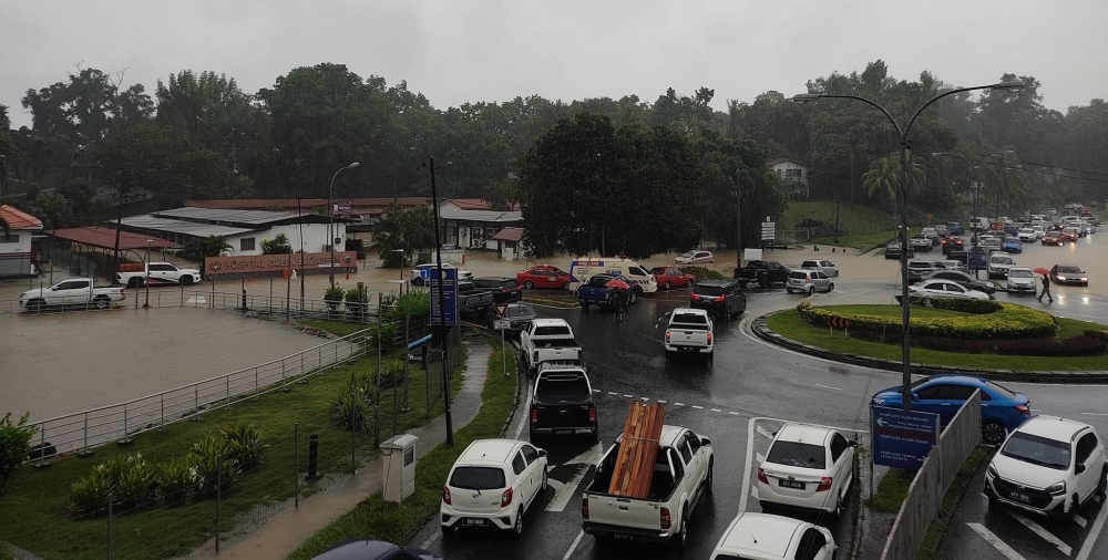 The road from Kolombong to Inanam was also affected by flash floods. Traffic was still passable but there was some congestion.
