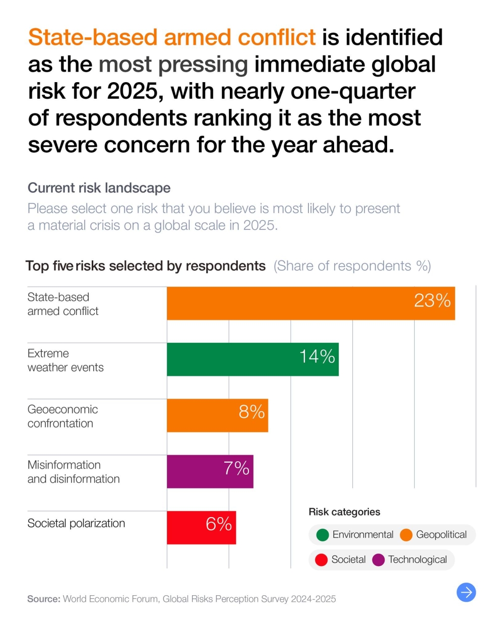 This comes as the report identified state-based armed conflict as the most pressing immediate global risk for 2025.