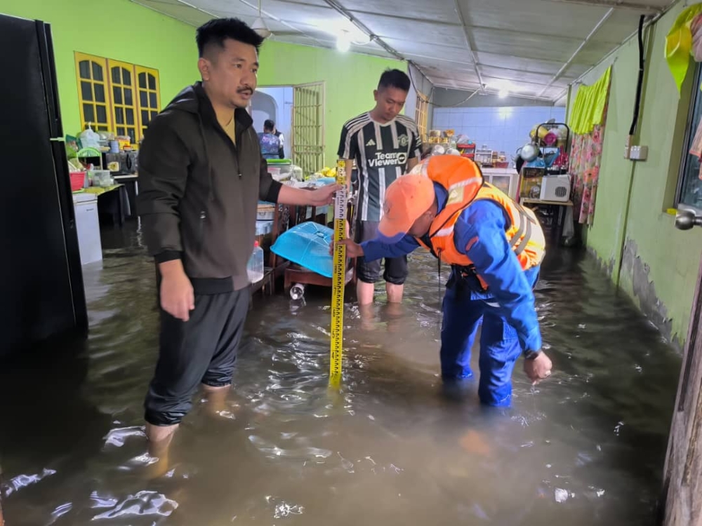 “In Kampung Tellian Ulu, water levels have risen to 0.49 metres, flooding the main road and entering several houses. However, the situation is under control, and roads are still passable for light vehicles.