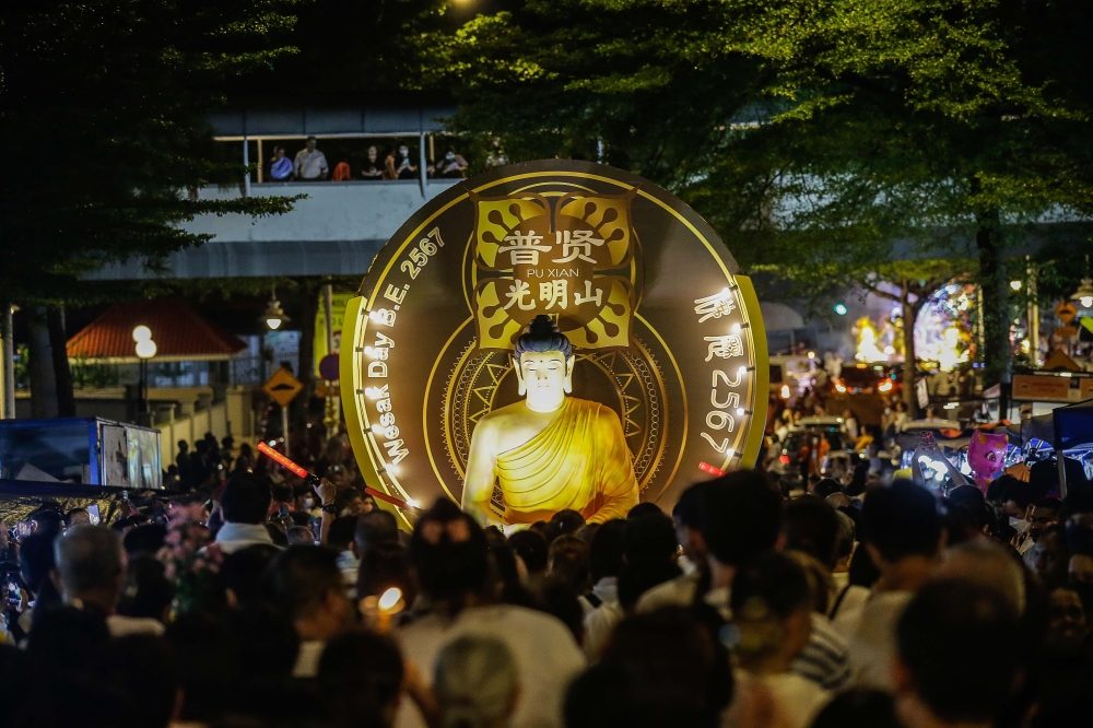 Between 20 to 25 colourful floats featuring Buddha’s life and teachings will participate in the 12-kilometre procession, which begins at 6pm and is expected to last four hours.