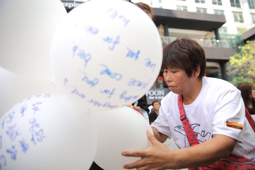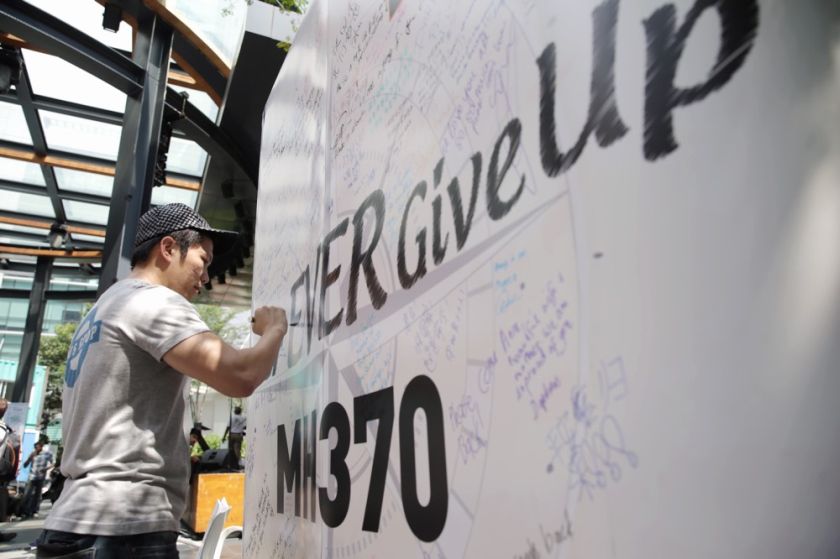 Family members of a passenger on board MH370 are seen holding a photo of their loved one during the MH370 Remembrance Day at Publika, March 8, 2015. u00e2u20acu2022 Picture by Choo Choy May