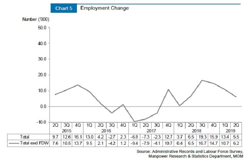 - Driven primarily by growth in the services sector, total employment continued to grow by 6,200 in the second quarter of this year, with the figure roughly similar to the same quarter last year. This figure excludes foreign domestic workers.