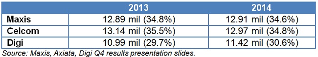 KUALA LUMPUR, March 12 — 2014 was an interesting year for mobile operators in Malaysia. Celcom Axiata Bhd appeared to have lost pole position in terms of subscriber base, Maxis Bhd starting to regain some of its lost ground, and Digi.Com Bhd continued to grow its market share in most, if not all, areas.