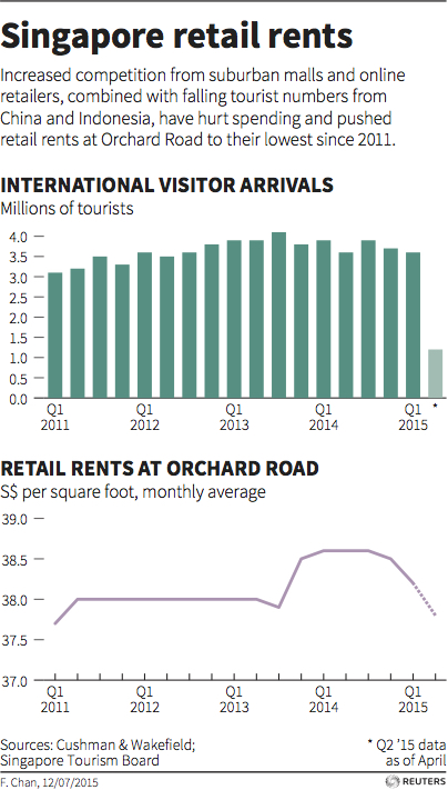 That’s bad news for Orchard Road’s glitzy malls, which showcase brands such as Inditex’s Zara and H&M as well as luxury names like Chanel and Prada. Increased competition from suburban malls and online retailers, combined with falling tourist numbers from China and Indonesia, have hurt spending and pushed retail rents to their lowest since 2011.