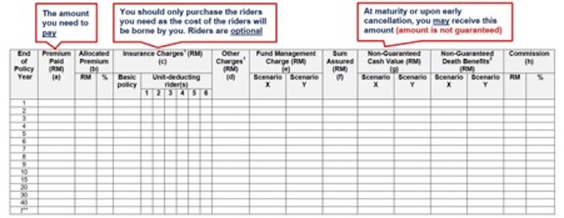 This is applicable for all types of funds except for equity funds, for which the rates should be 2% and the 10-year average historical FTSE Bursa Malaysia KLCI returns for the first 20 years and then 5% after that. According to Bank Negara, the 2% and 5% rates better demonstrate the interactions between cash flows without giving rise to undue expectations. These set rates should help paint a uniformly realistic picture to potential customers when deciding whether to take on an ILP policy.