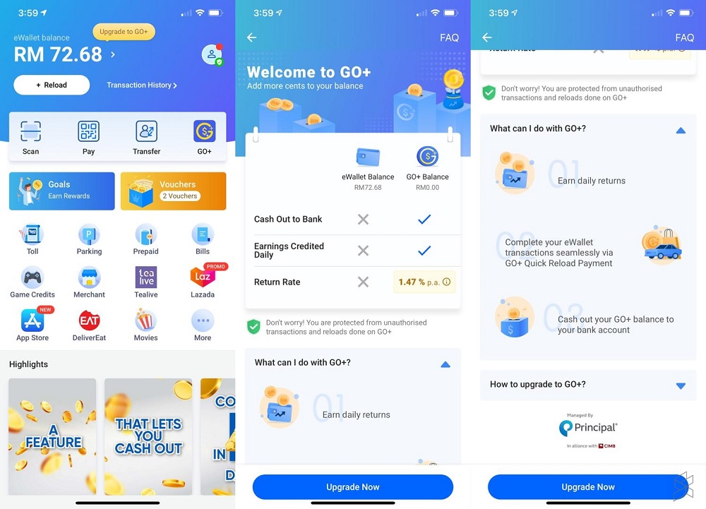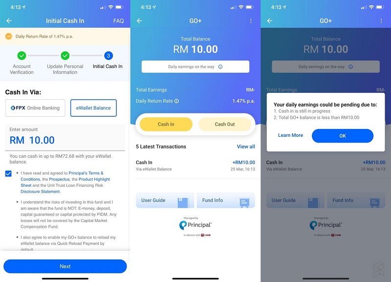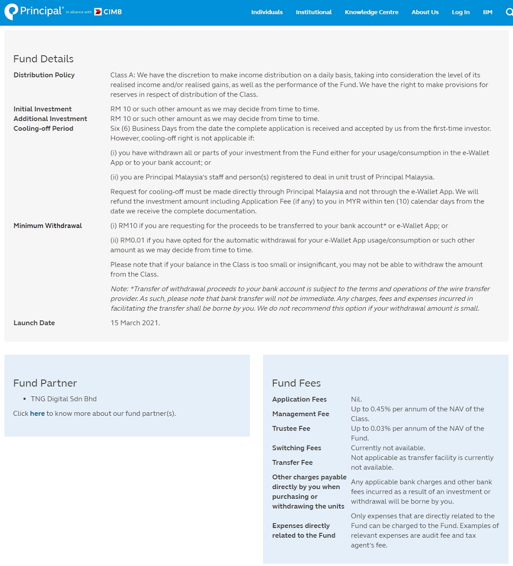 The Go+ offering is anchored on Principal e-Cash Fund, a money market fund managed by Principal Asset Management (Principal). Principal is a joint venture between Principal Financial Group and CIMB Group Holdings.