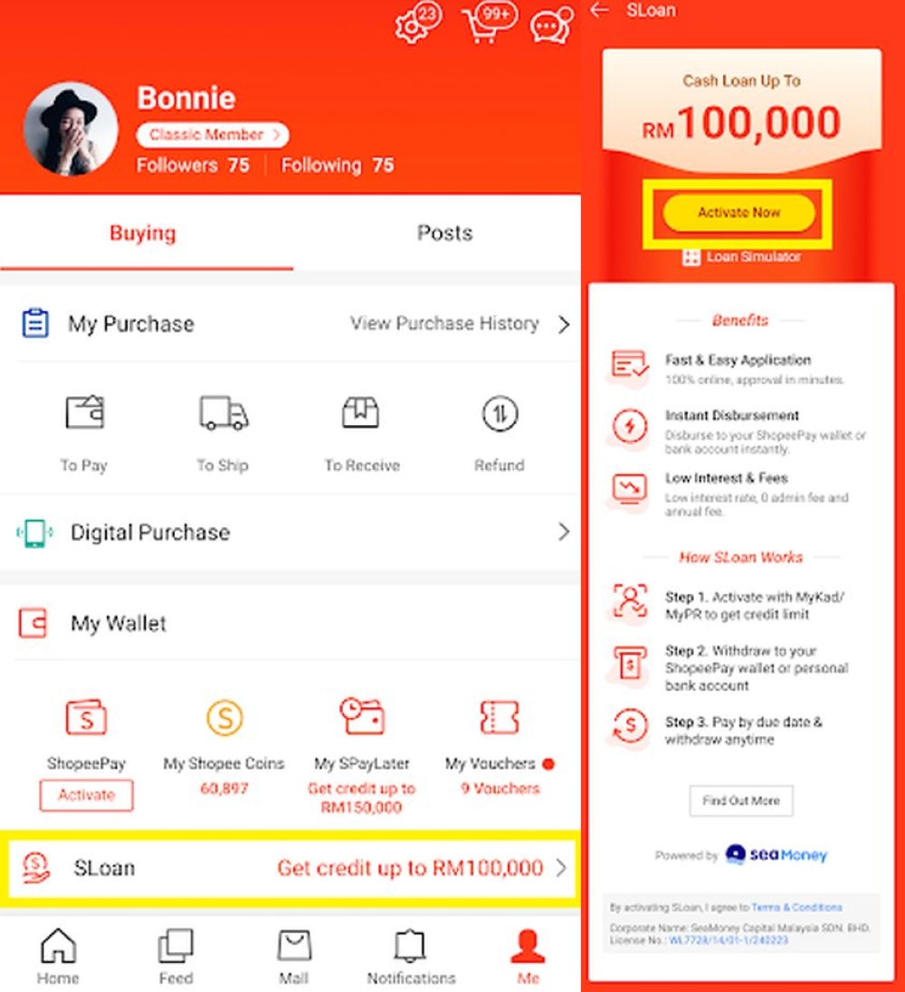 At the moment, it is being offered to selected users and the SLoan feature will appear in your Shopee profile below “My Wallet” if you’re eligible.
