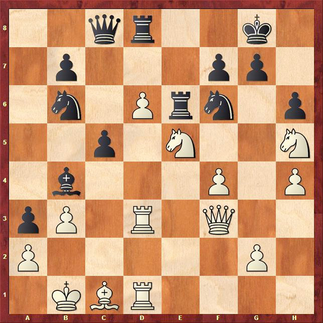 b1)18...Bd8 19.Qg3 Nh5 20.Nxh6+ Kh7 21.Qd3+ f5 22.Nhf7!?Nxe5 23.Nxe5 dxc4 24.Qf3 Nf6 25.Bc3 with powerful attack.