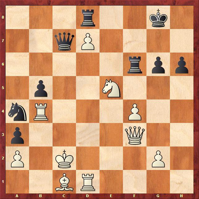 29...c4 30.Rg3 g6 31.h5 cxb3 32.Rxb3 Na4 33.hxg6 fxg6 34.Rxb4 Nc3+ 35.Kc2!