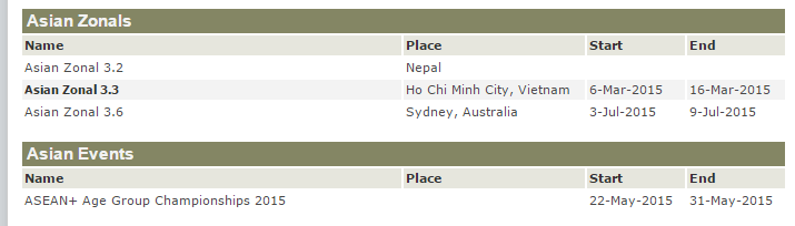 Of the three Asian Zonal Championships, Vietnam is hosting the 3.3 Championship from March 6-16, 2015 to dovetail into their HD Bank Cup Open Championships immediately after from March 17-24, 2015.