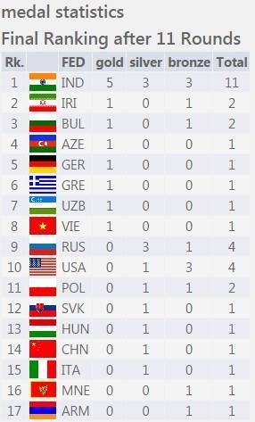 Three things stood out for me: the first was that the Indians are always challenging for the medals; secondly, one cannot help but notice that large numbers of very young and well-trained players were participating from Kazakhstan, Mongolia and Uzbekistan and finally, Iran has some very good players.