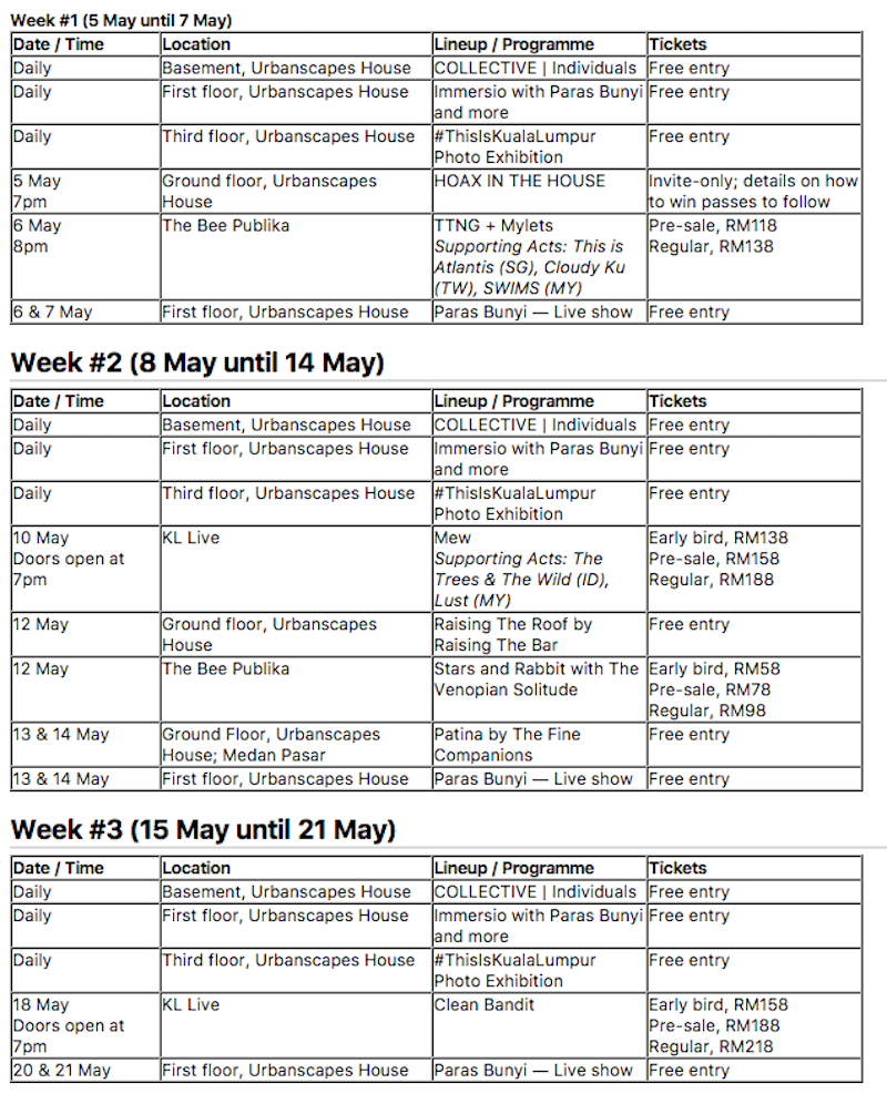 Tickets will go on sale on March 10. Meanwhile, for more info, log on to urbanscapes.com.my.