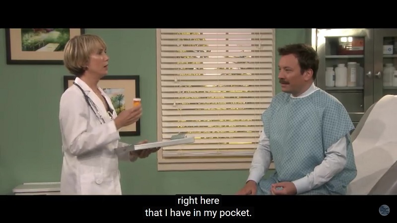 The words are then used for a comical sketch where Wiig plays a doctor and has to break some pretty bad news to patient Fallon.