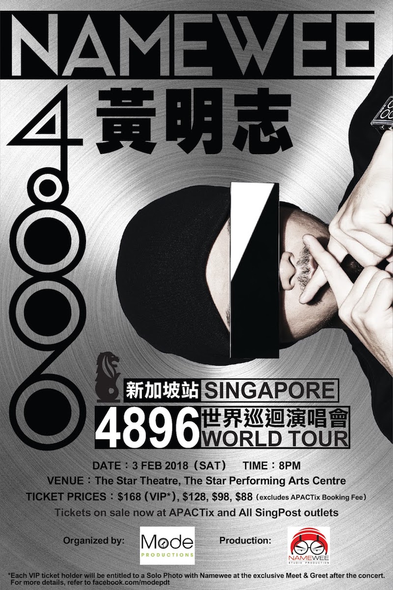 Tickets for Namewee 4896 World Tour in Singapore are sold at SGD88, SGD98, SGD128 and SGD168, and are available through apactix.com. — TheHive.Asia
