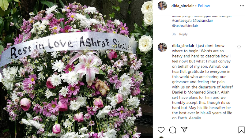 “Our heartfelt gratitude to everyone in this world who is sharing our grievance and feeling the pain with us on the departure of Ashraf Daniel b. Mohamed Sinclair.”