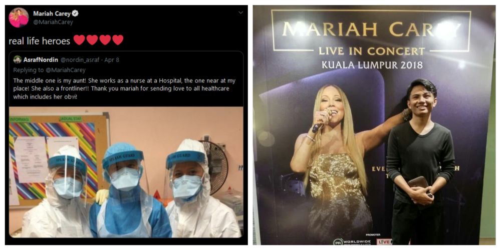 Mohamad Asraf Nordin can now tick that off his bucket list after his tweet received a like, and was quoted in a tweet by American pop diva Mariah Carey, with the caption, "True Heroes".