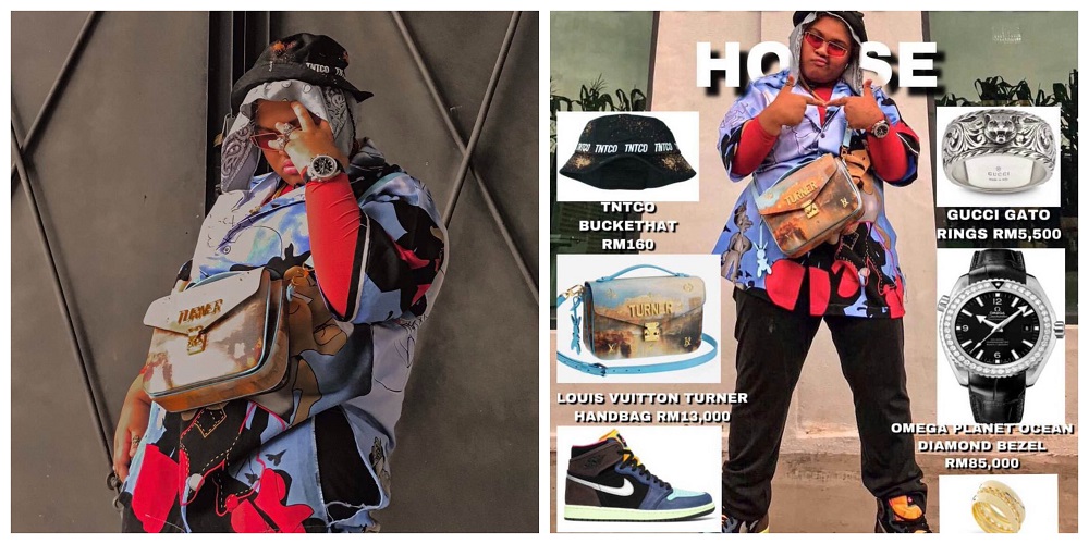 Her look featured an Omega Planet Ocean Diamond Bezel watch valued at RM85,000 and an RM13,000 Louis Vuitton Turner handbag.