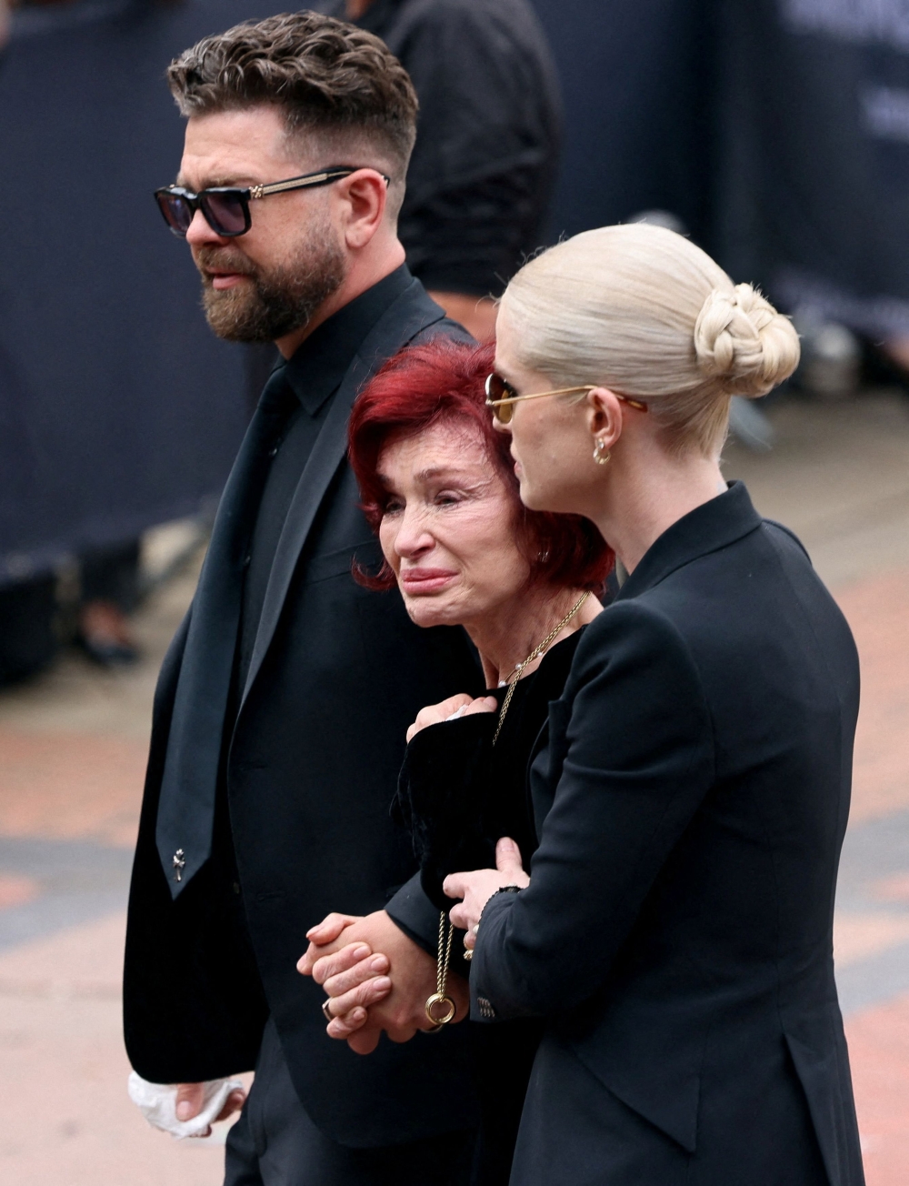 It stopped at a bench dedicated to the musical pioneers, and Osbourne’s wife, Sharon, and their family looked at some of the thousands of flowers and tributes left by fans.