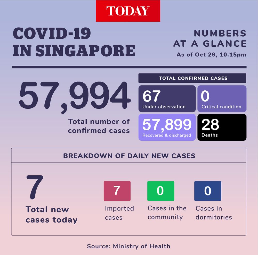 SINGAPORE, Oct 29 — Singapore has confirmed seven new cases of Covid-19, all of which were imported. There were no cases in the community.