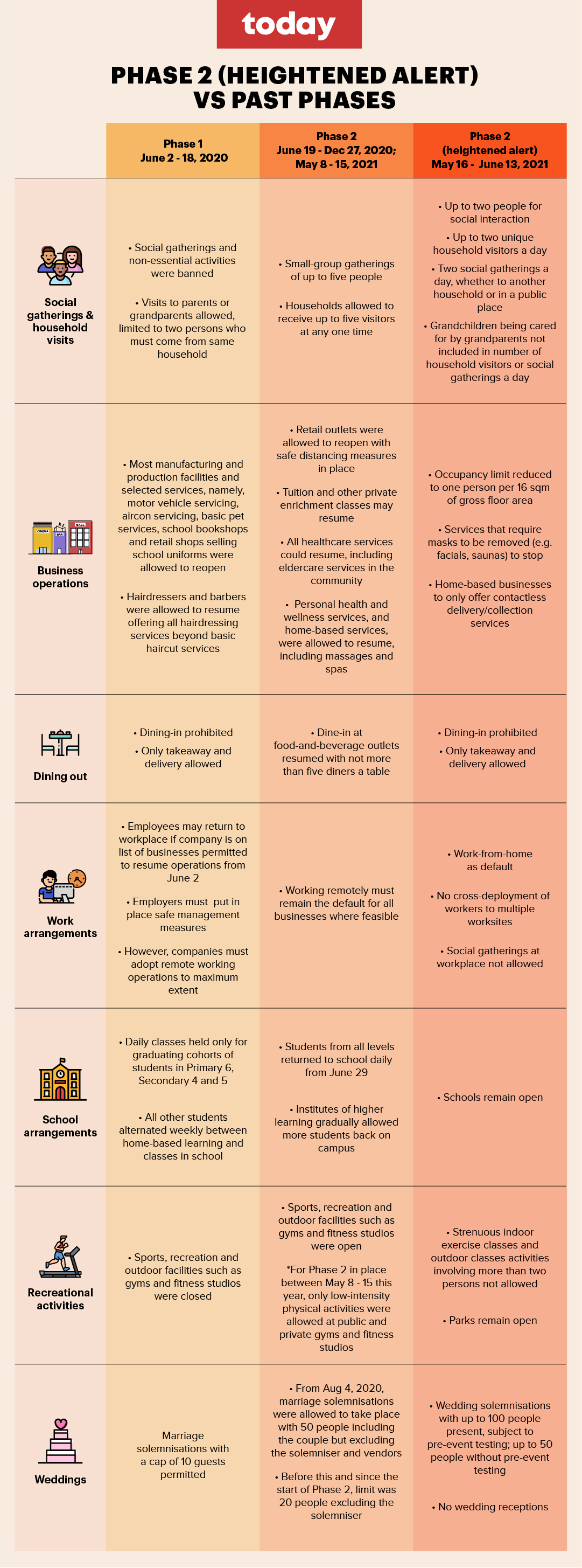Unlike the circuit breaker last year from April 7 to June 1 when all activities except essential ones were prohibited, this round of public health safety measures offer some room and respite for people to socialise and attend gatherings or events but with stricter limits.