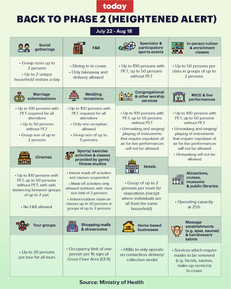 MOH said that community measures would be rolled back to those in Phase 2 (heightened alert), which were implemented from May 16 to June 13.