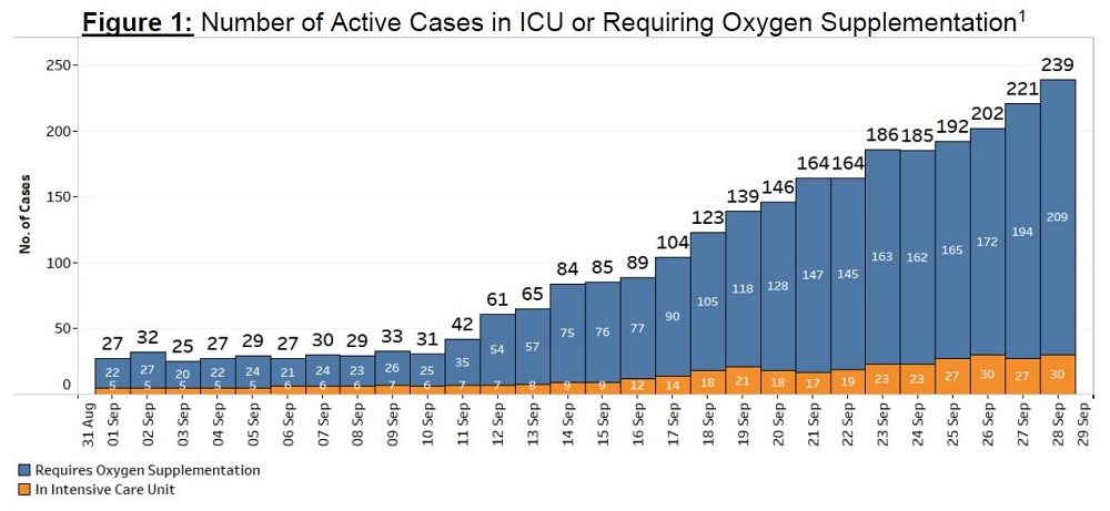 Of these, 209 patients require oxygen support to help them breathe, up from the 194 reported the previous day.