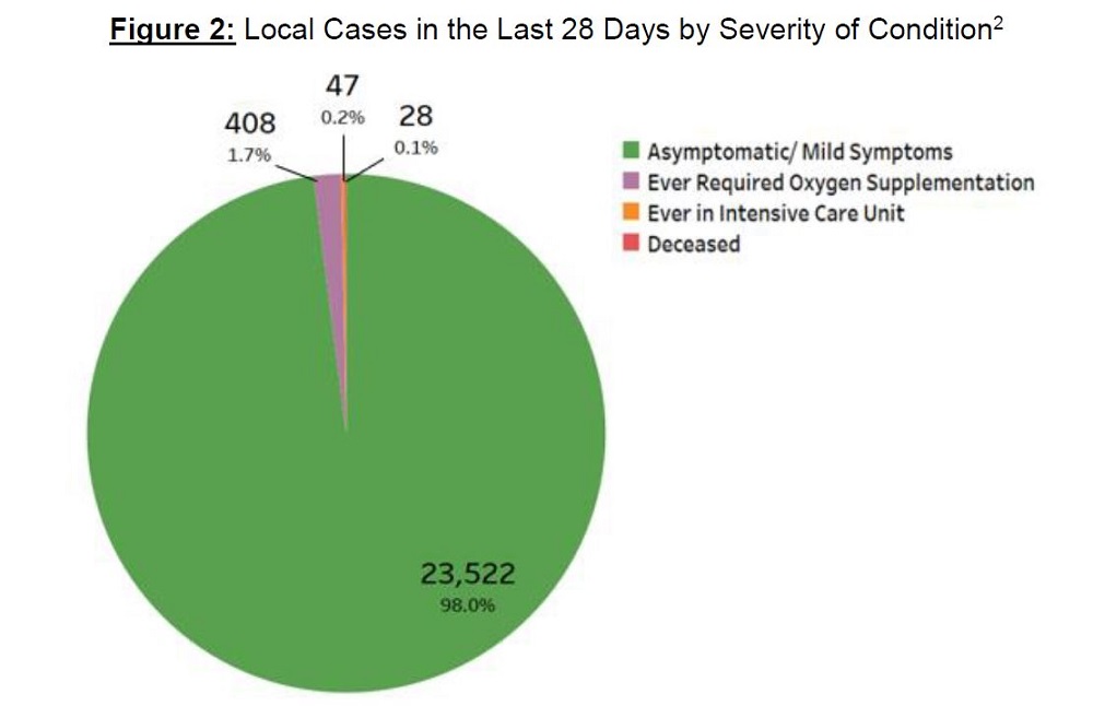 MOH said that over the last 28 days, the percentage of local cases who were asymptomatic or had mild symptoms is 98.0 per cent.