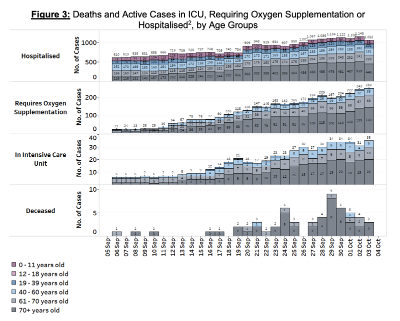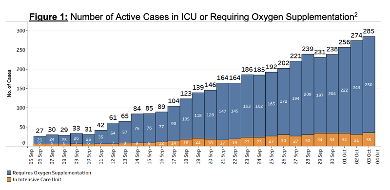 There are 250 patients requiring oxygen support, up from 243 the previous day.