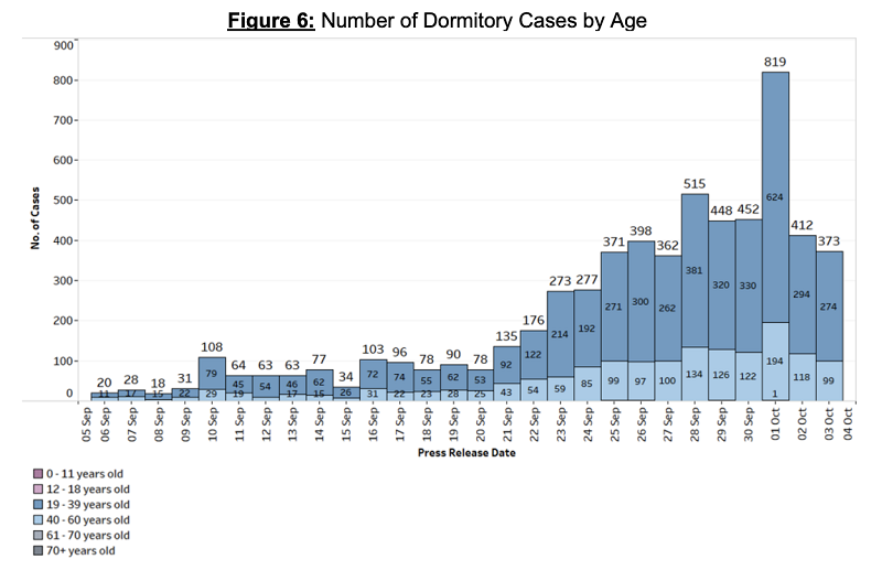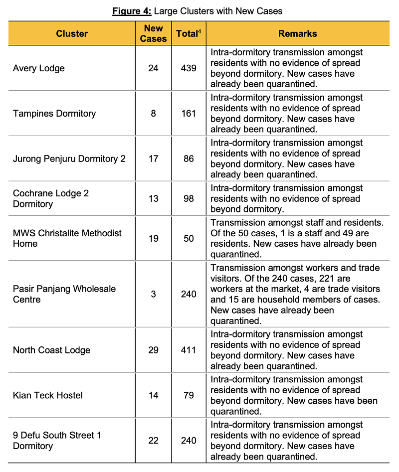 Of the nine clusters, seven are foreign worker dormitories.