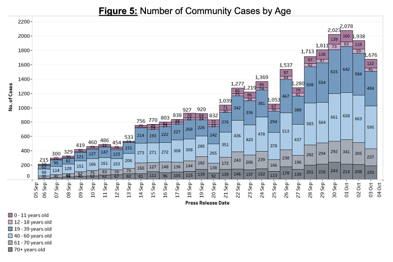 SINGAPORE, Oct 4 — The Ministry of Health (MOH) yesterday recorded 2,057 new cases of coronavirus infection in Singapore, with 1,676 in the community, 373 in the migrant worker dormitories and eight imported cases.