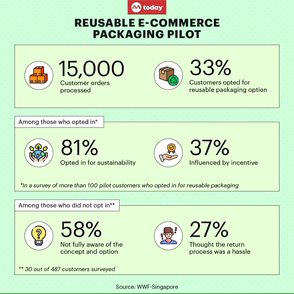 The growing waste problem prompted WWF-Singapore to conduct a feasibility study in 2021 before launching the reusable e-commerce packaging pilot last year.
