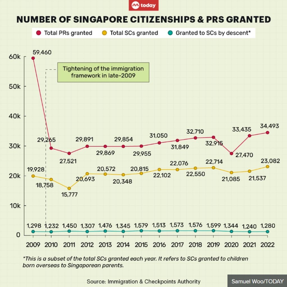 - In 2022, 23,082 individuals were granted citizenship and 34,493 individuals were granted PR