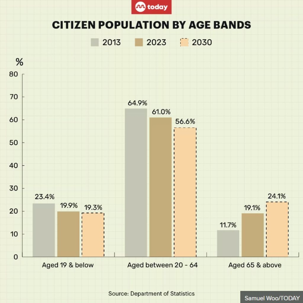 - Since 2013, the number of citizens aged 80 and above has jumped by about 70 per cent from 80,000 in 2013 to 136,000 in 2023