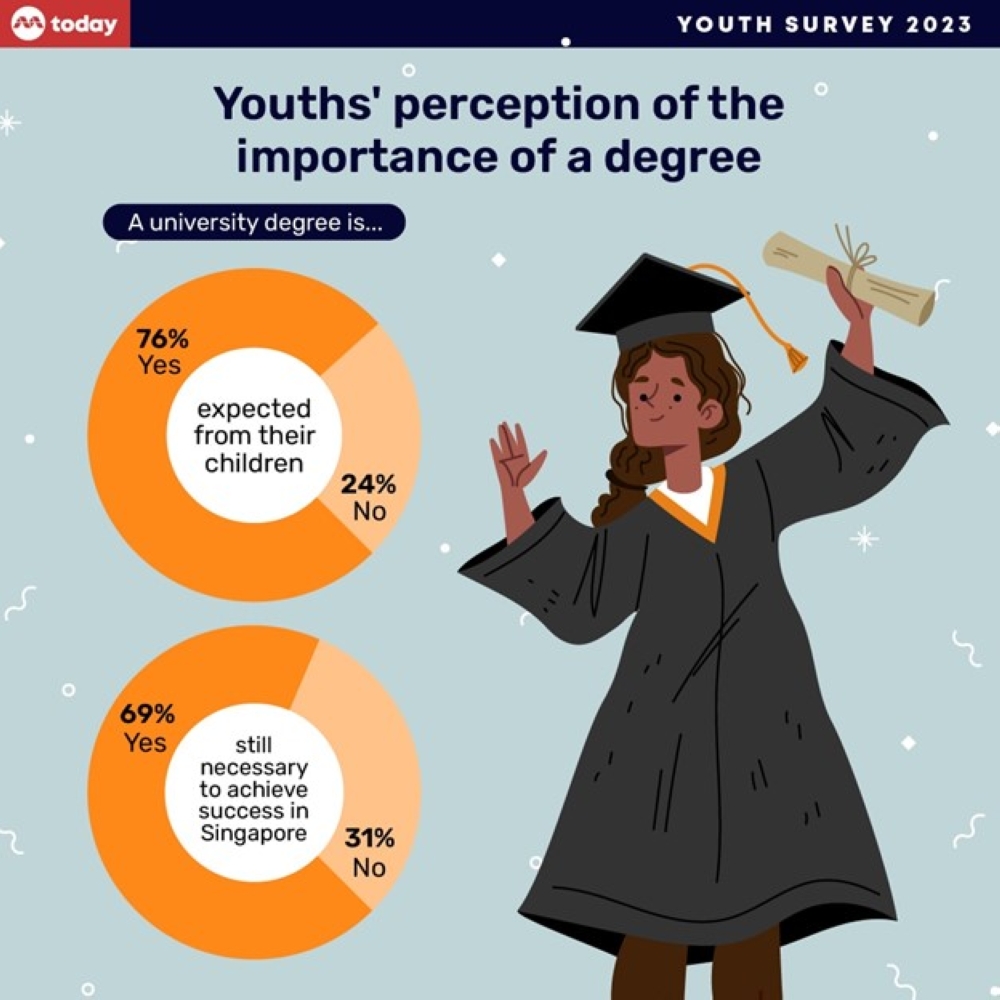 Sixty-nine per cent also said that having a degree was still necessary to achieve success in Singapore.