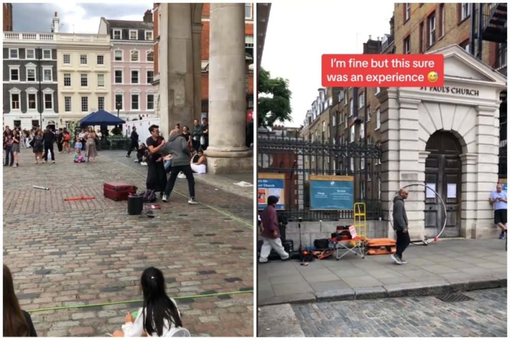 A video of the incident, posted by the circus artist on TikTok, showed him talking to the man before the sudden assault.