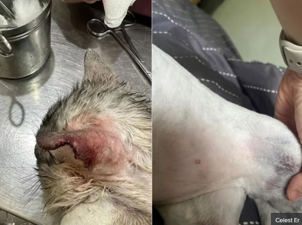 Celest Er, who owns the Siberian munchkin, rushed her pet to a nearby veterinarian where it got 12 stitches for its ear.