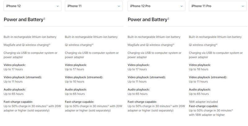 Between the iPhone 12 and the iPhone 11, Apple claims that the newer device has a slightly better battery life for video streaming usage with up to 11 hours instead 10 hours on the previous model. That’s quite remarkable considering that the iPhone 12 now pushes a higher Full HD+ resolution of 2532×1170 pixels on an OLED panel instead of a lower 1792×828 pixels LCD display on the 11.