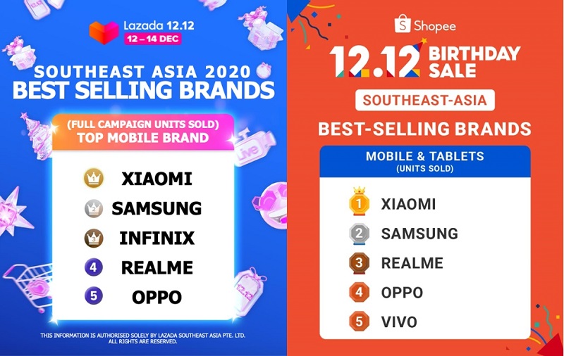 For the Southeast Asian region, Xiaomi also takes the #1 spot overall for both Lazada and Shopee, while Samsung is #2 for both platforms.