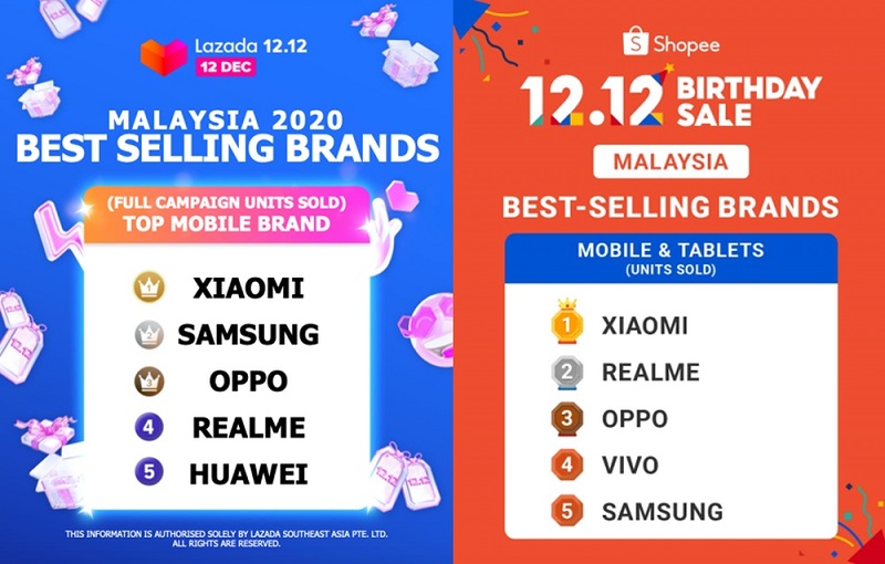 On Lazada Malaysia, the best-seller list continues with Samsung taking 2nd place, followed by Oppo, Realme and Huawei.