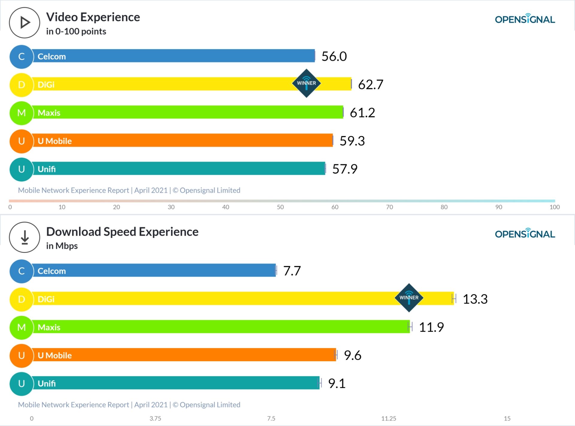 KUALA LUMPUR, May 1 — If you’re looking for the best download speed and video streaming experience in Malaysia, Digi has emerged as the best telco on Opensignal’s latest Mobile Network Experience Report 2021. The latest analysis is based on data recorded between 1st December 2020 to 28th February 2021.
