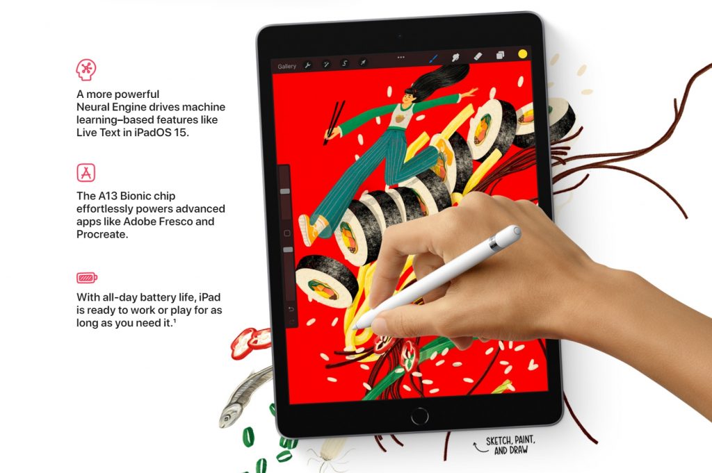 While it isn’t running on the shiny new 5nm Apple A15 Bionic chip, the new iPad has been upgraded from an A12 Bionic to an A13 Bionic unit. This is the same processor that’s found on the iPhone 11, iPhone 11 Pro and iPhone 11 Pro Max which still provides excellent performance for all your application needs. According to Apple, the A13 Bionic provides 20% more performance than the previous generation.