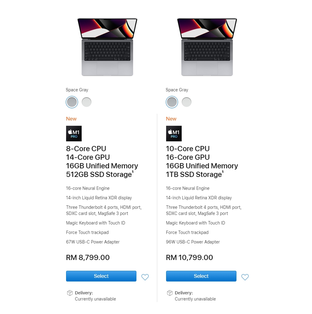 At the moment, there are no official availability details for the Malaysian market but you can check out the pricing and configuration options for both MacBook Pro 14 and MacBook Pro 16 on the official store. — SoyaCincau